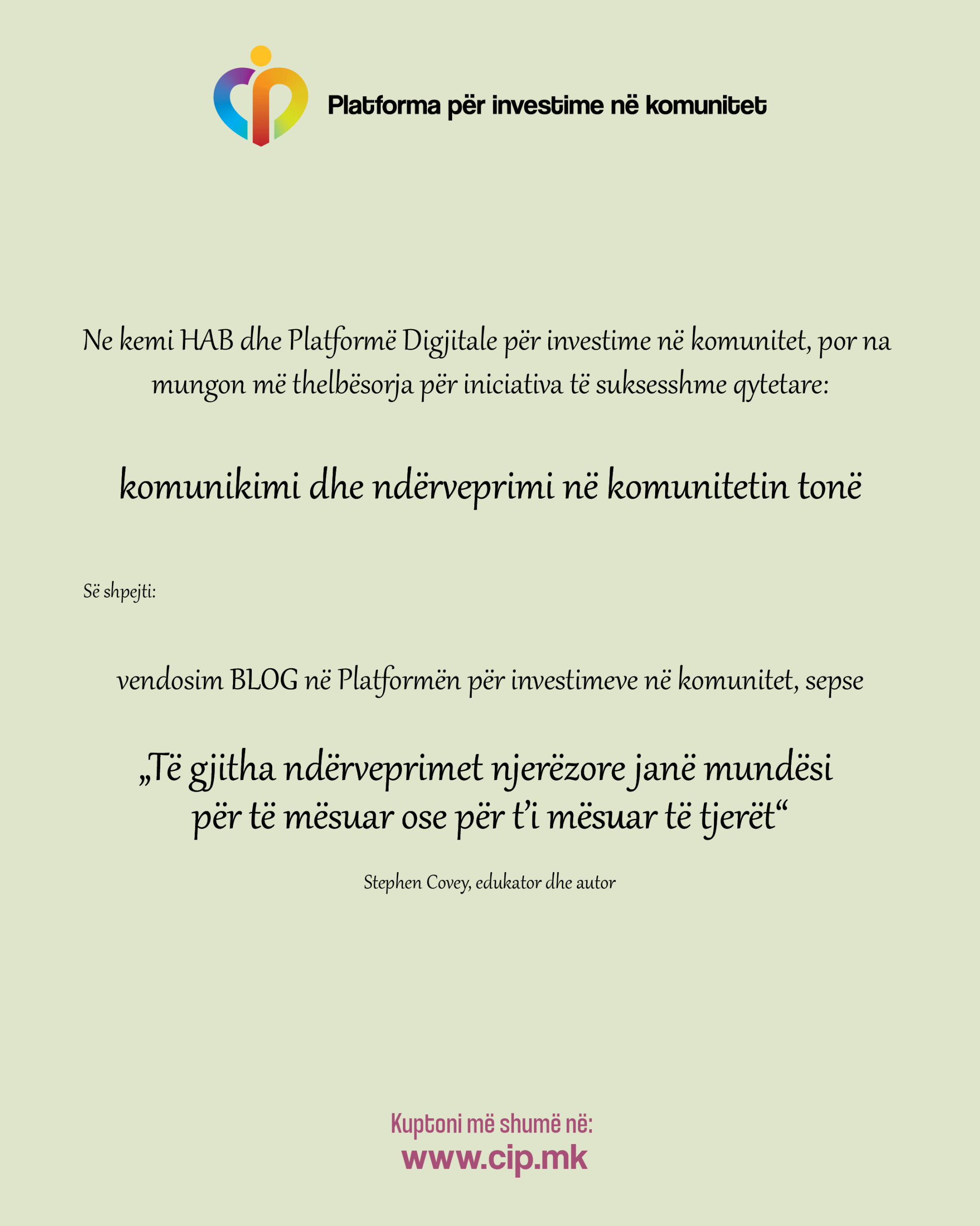 BLOG për komunikim, ndërveprim, dhe shkëmbim të ideve për iniciativa të reja nga perspektiva të ndryshme qytetare, së shpejti do të vendoset për familjen e madhe 95 anëtarëshe në Platformën për investime në komunitet.
